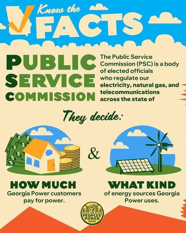This year, Georgia voters hold a key lever of influence: two statewide seats on the PSC (Districts 2 & 3) are up for election on November 4, 2025. Advance (early) in-person voting will run roughly from October 14 to October 31, 2025 in most counties. For details on registration, early voting, and polling locations, visit govotega.org to make sure your voice is heard this November.