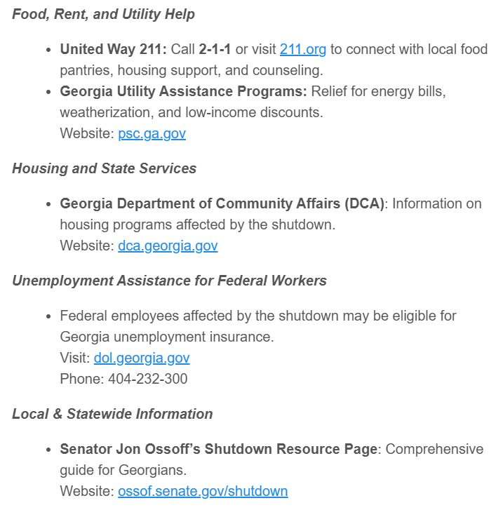 Below are helpful government shutdown resources from State House Rep. Stacey Evans in her newsletter.